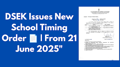 The Directorate of School Education Kashmir (DSEK) has issued a fresh directive regarding school timings for both government and recognized private schools across the Kashmir Division, effective June 21, 2025.